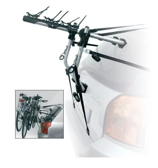 Portaciclo posteriore universale in alluminio anodizzato, porta 3 biciclette, chiuso occupa poco spazio, nuovi rocchetti dentati per una sicurezza maggiore.